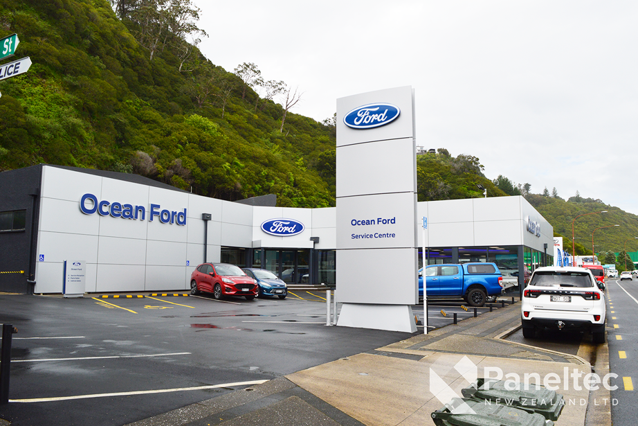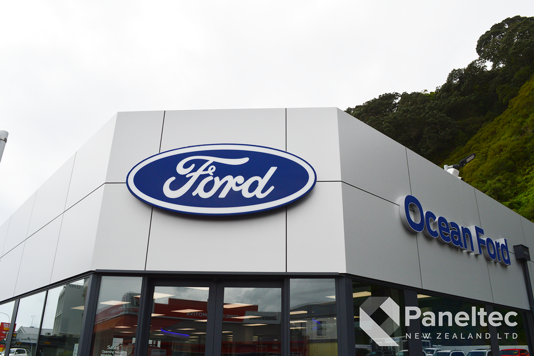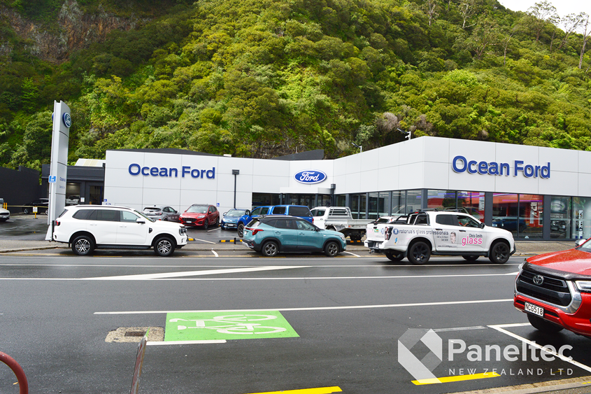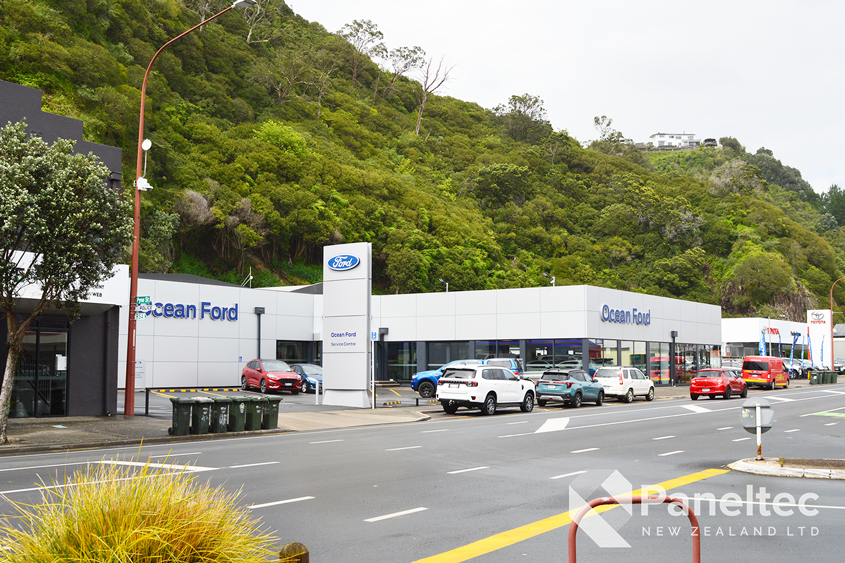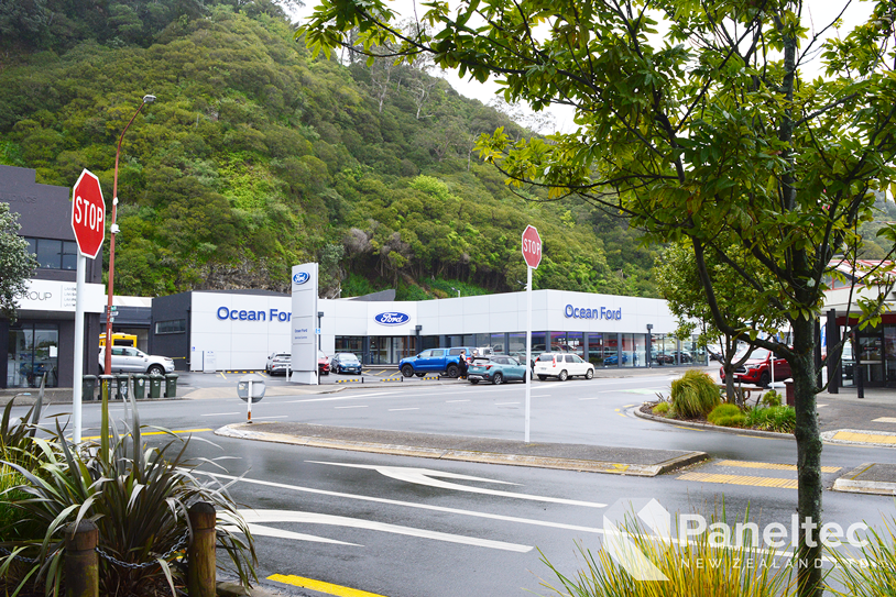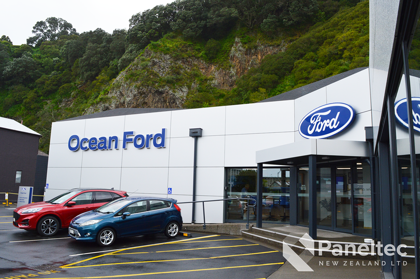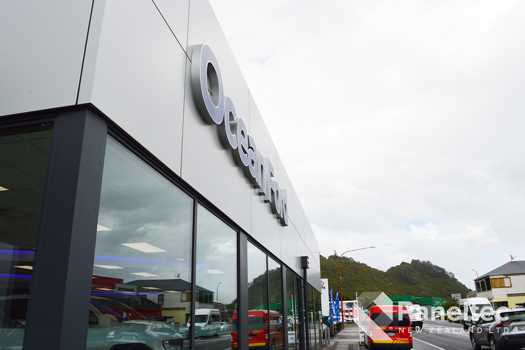 The refurbishment of Ocean Ford in Whakatane meant that they needed new cladding over the whole building. The architect choose Induracore G2 in Silver Ice Metallic for a high-end and low-maintenance cladding on this commercial building.